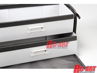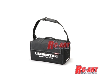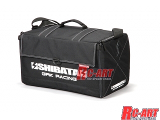 シックなブラックをベースにホワイトの「SHIBATA GRK RACING」のロゴが映える、1/10サイズのRCカー対応の2段構造バッグです。
