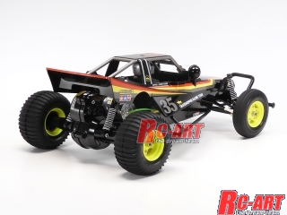シンプルな構造で扱いやすく、オンロードからオフロードまで軽快な走りが気軽に楽しめる電動ラジオコントロールバギーの組み立てキットです。全長389mm、全高135mm、全幅223mm、車体重量830g。