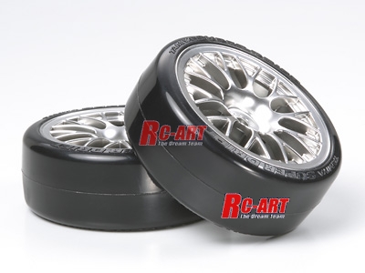 ドリフト走行を手軽に楽しめる組立・接着済みの樹脂製ドリフトタイヤ。通常のゴムタイヤから組み換えるだけでスライド量の多い迫力あるドリフト走行が可能になります。樹脂製タイヤにありがちな直進性および加速の悪さを抑え、コントロールのし易い特性になっています。ホイールのメッキ色は艶を抑えたクロームシルバー。各種ツーリングカーに使用可能です。