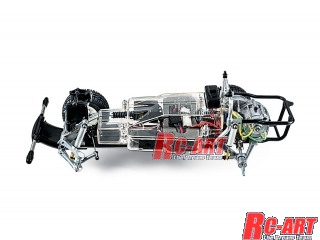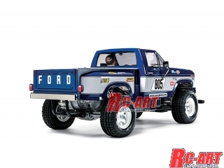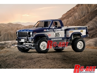 直線的なデザインと丈夫なラダーフレームを持ち、クラシックトラックとして現在でも人気が高い7代目のフォードFシリーズを再現した電動ラジオコントロールカーの組み立てキットです。全長430mm、全幅215mm、全高185mm、車体重量約1880g。ボディはリアルなABS樹脂製。サイドミラーやワイパーを別パーツで用意しました。また、フロント・ボディマウントはフック式。ボンネットにマウントステーが突出しないスケール感の高い構成です。ヘッドライトは別売のLEDを装着して点灯可能。当時の代表的なカラーリングを再現できるステッカーセットや、0.2mm厚FRPプレートと補強用ジュラルミンパネルで構成されたメインフレームは、しなやかさと強度をあわせ持ち優れた走行安定性を生み出します。前後のサスペンションはダイキャスト製。フロント・ダブルトレーリング、リヤ・スイングアクスルの4輪独立サスペンションを採用し、ショック吸収性に優れたオイルダンパーを4本装備しました。RCメカや走行用バッテリーを収納するメカボックスは防塵性の高い透明プラスチック製。オフロードでの走りの信頼性を確保します。組み立て式の3ピースホイールに、中空ゴム製ブロックパターンタイヤを装着。